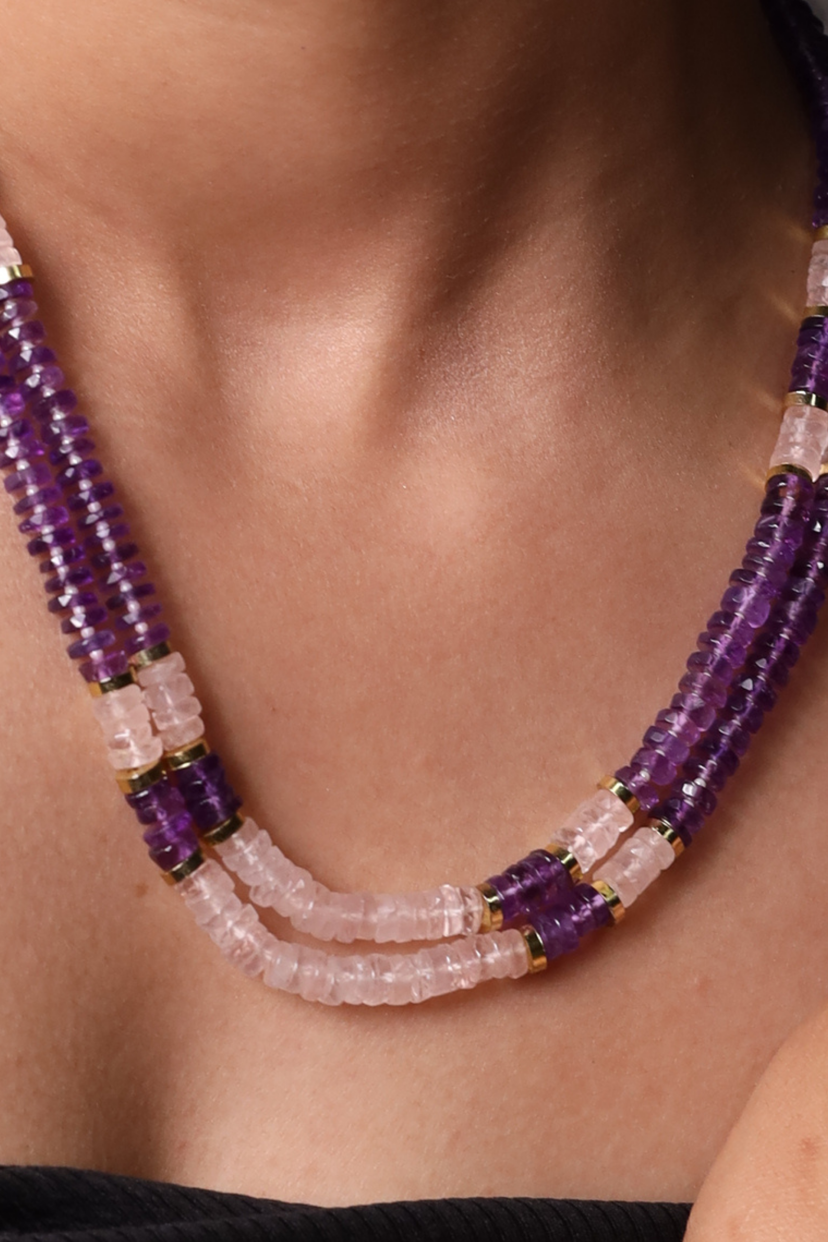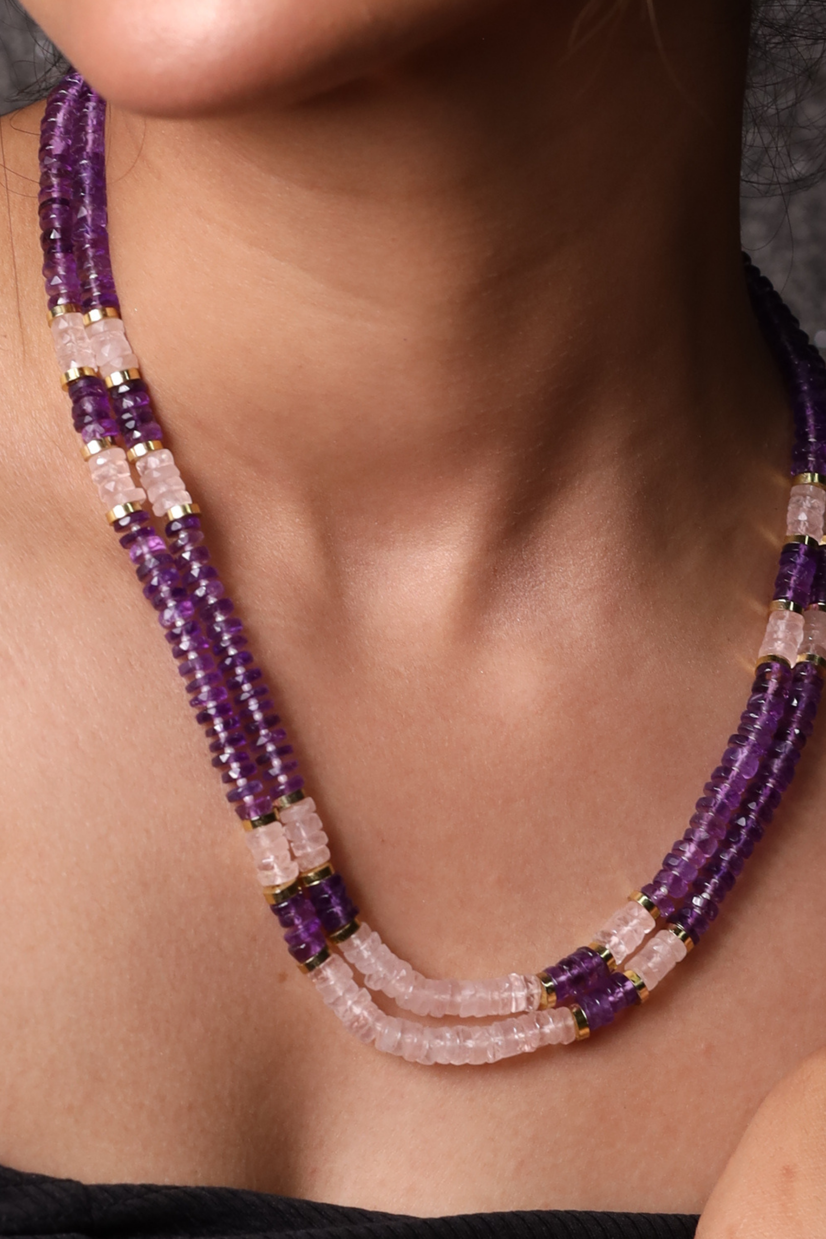 Amethyst and Rose Quartz Beads Necklace.
