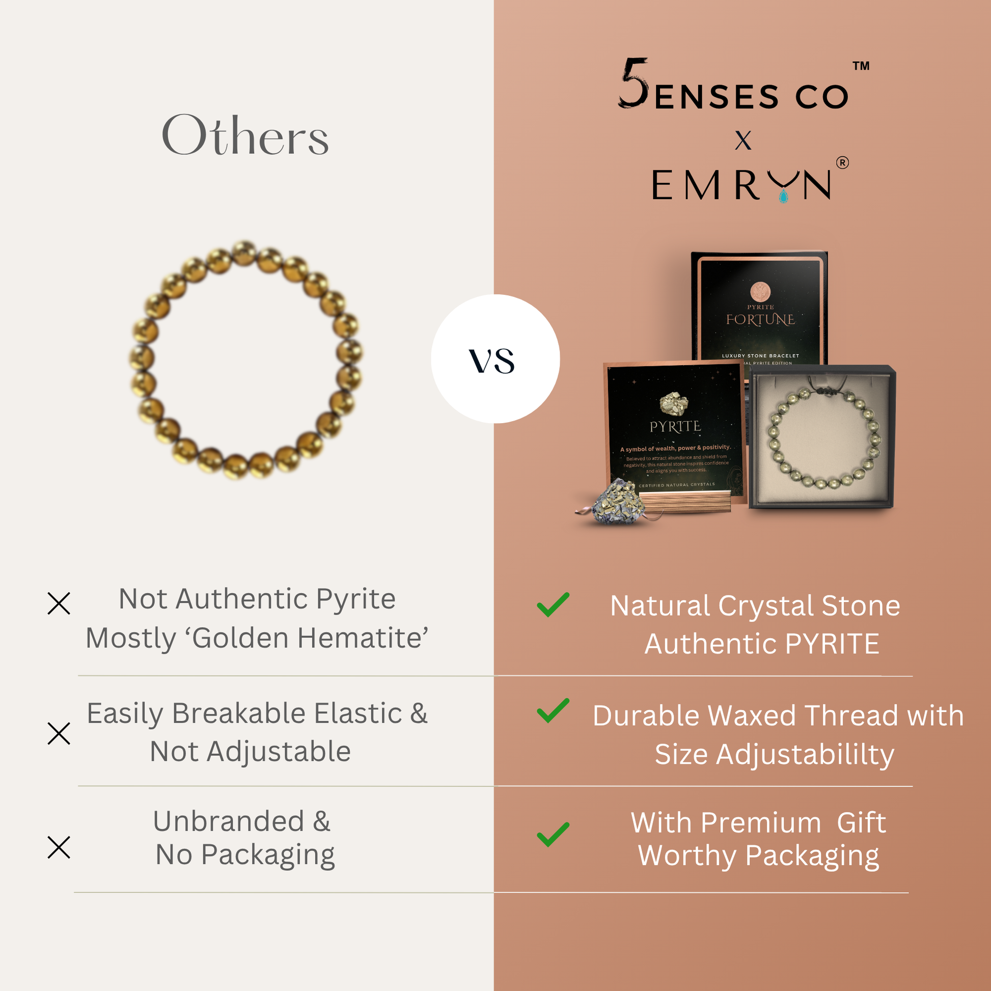 Introducing the Authentic Pyrite Bracelet by Emryn – a handcrafted luxury piece made from 100% genuine Pyrite crystal, known for its golden glow and magnetic energy. Unlike cheap imitations using “golden hematite,” our bracelet features certified natural Pyrite that symbolizes abundance, protection, and success.
