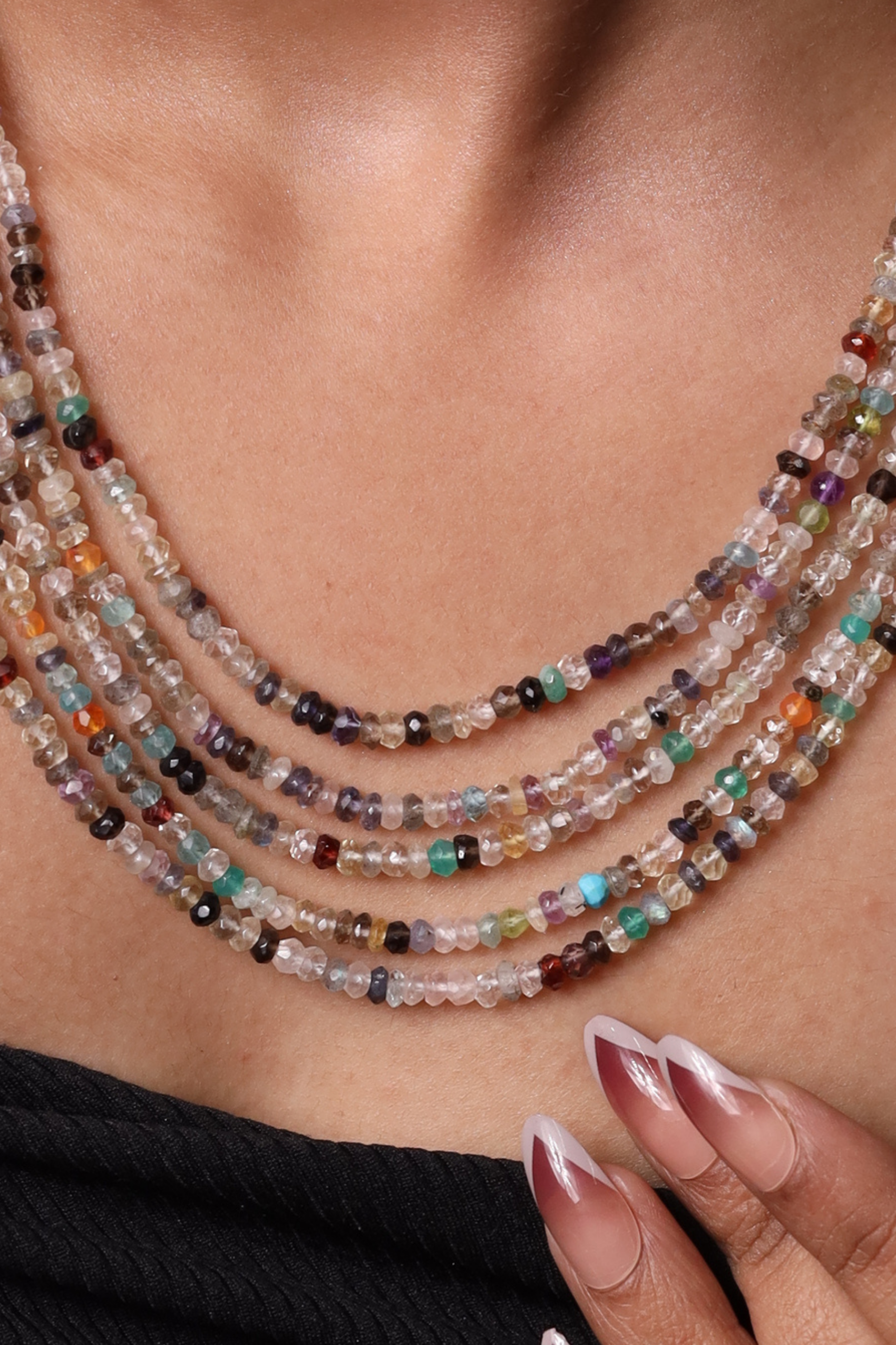 Bold, brilliant, and full of personality, our Faceted beads Designer Multicolor Necklace is a true statement piece. Crafted with precision-cut faceted beads in a vibrant mix of colors, this necklace sparkles from every angle, catching the light with effortless charm. The multi-hued design adds a playful yet elegant touch, making it perfect for festive occasions, evening outings, or elevating a simple everyday look. Each bead is carefully selected for its color, clarity, and shine, resulting in a beautifully balanced piece that’s both eye-catching and refined. Expressive, energetic, and uniquely handcrafted — this necklace is made to stand out.