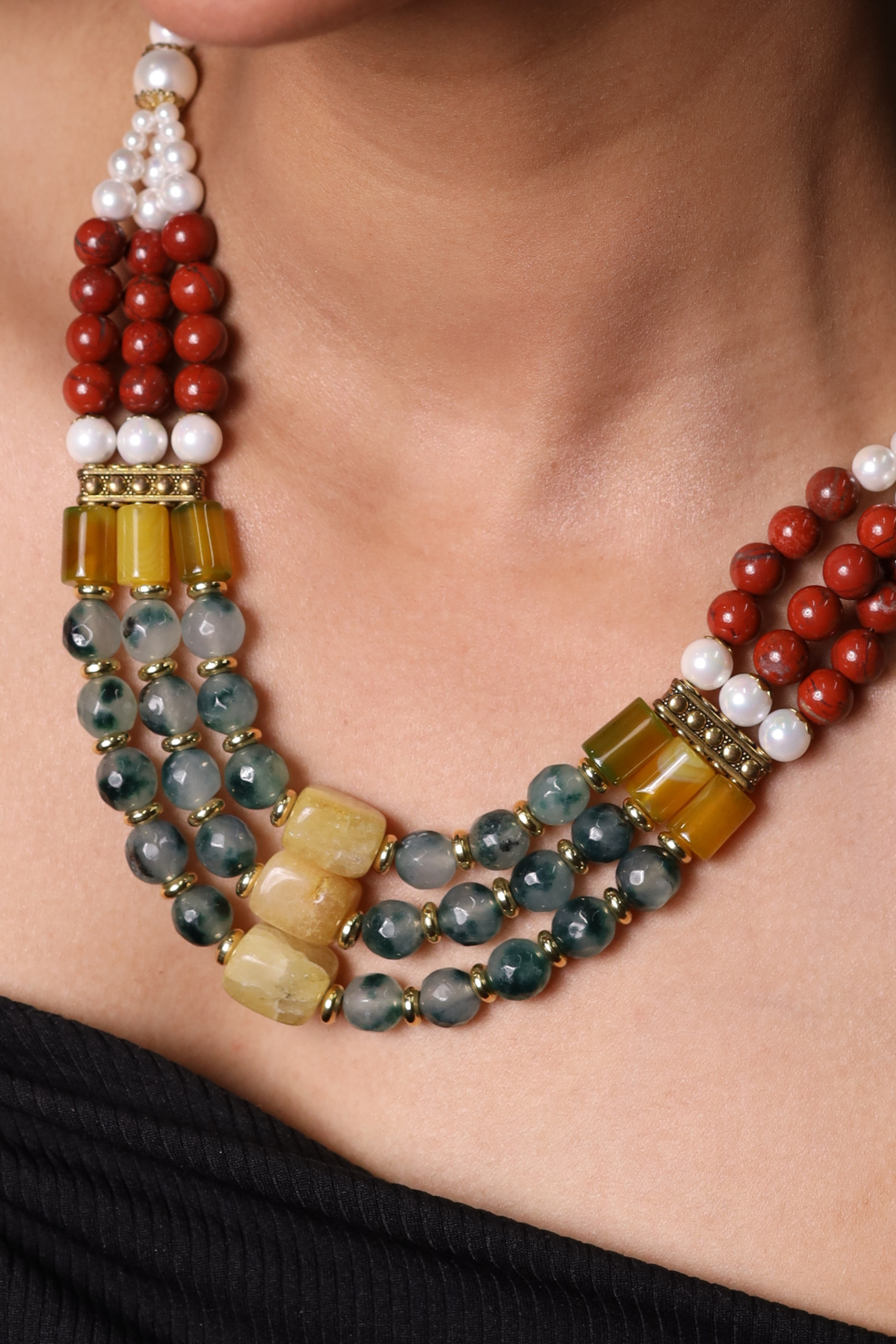 Radiating warmth and elegance, our Red Aventurine with Pearl Necklace is a perfect harmony of earthy richness and timeless sophistication. Featuring the glowing, sunset tones of red aventurine paired with the soft luster of pearls, this necklace is designed to elevate both everyday and special occasion looks.